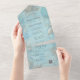 Introducing this exquisite All-in-One wedding invitation, inspired by the beauty of the ocean and coastal charm. This invitation is carefully crafted to capture the essence of your beachside wedding, featuring delicate sea shells and enchanting starfish in serene shades of blue, aqua, and sand. Embrace the coastal vibes and elegance with this stunning invitation that will leave a lasting impression on your guests.
