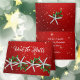 Deck the halls sea stars Christmas cards with custom message. Red with twinkling stars design covers all sides of folded cards that come in two sizes. Big white sea stars (or starfish) are wrapped in green holly leaves and decorate the front and inside. Swirling script, in white, is easy to customise front and inside. Sample wording is, “Deck the halls.. with love and laughter. Warm wishes for a fantastic holiday season”.