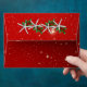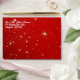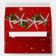 Red Christmas envelopes with starfish and return address template. Made to match our Christmas cards, the envelope flap and inside are decorated with white sea stars and green holly images. The entire linen envelope is red with twinkling stars.