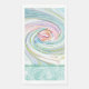 The soft pastel colours of this abstract swirl from one of my oil paintings, looks like a multi blue sea spinning around a pink watercolor shell. The watery marbleised border adds sophistication.