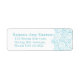 Simple outline drawing in white and blue with graphic wave swirls, Beautiful blue green and white coastal colours wedding return address label part of this wedding set design. A perfect reply label for a beach, coastal ocean inspired, or ocean sea destination wedding Edit this label with your name and address. Uniquely designed by Sarah Trett.