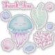 Sea themed party stickers featuring cute sea creatures and seaweed illustrations.
