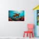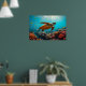 Sea Turtle and Many Small Fish Underwater Poster