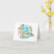 Watercolor sea turtle and tropical flowers are beautiful on this basic blank note card. Your handwritten message will be even more special with blue and aqua tropical artwork on front. Blue hibiscus flowers and green banana leaves wreath surrounds sea turtle for a ocean, island, or beach theme. Sea blue and green sea life artwork makes an easy template for Hawaiian wedding invitations. A beautiful match for malibu blue or Bahama blue wedding invitation colours.