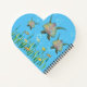 A colourful and cute pen and ink illustration of a group of friendly sea turtles with blue bubbles adorns this fun and functional heart shaped spiral notebook. Personalise it with your name or title!