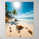 Sea Turtle & Crabs on Tropical Beach – Serene Ocea Poster