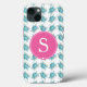This monogram phone case features watercolor sea turtle pattern in tropical shades of turquoise blue with your custom initial in white over a pink background. Artwork and design by Victoria Grigaliunas. To see more sea life and beachy phone cases like this visit www.zazzle.com/dotellabelle
