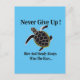 Sea Turtle Never Give Up Postcard designed by Nisha Prabhu. Send a message of perseverance and strength with our Sea Turtle Never Give Up Postcard! Featuring a captivating design of a sea turtle symbolising resilience, this postcard is perfect for sending words of encouragement to friends and family. Let the spirit of the sea turtle inspire hope and determination in your loved ones as they navigate life's challenges. Share a touch of motivation and positivity with our Sea Turtle Never Give Up Postcard and remind them to never give up on their dreams. Brighten someone's day with this uplifting and meaningful postcard that carries a powerful message of perseverance.