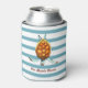 Sea Turtle Our Beach House on Dark Aqua Stripes Can Cooler