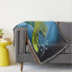 A quality printed throw has its advantages. This is a much finer weave throw than its loopier cousins, and though lighter, it is worth the investment for custom room accessorizing. The back is much prettier than the typical brown, and the fringe on the long sides very vivid, the selvage nicely done. Before photographing, I washed the throw in cold water, delicate, with a thicker woven throw the same size. On tumble dry low, this throw was dry in half the time as the other. This is a very practical quality if you use throws for furniture covers or to wrap up in frequently. The sleekness of the fabric makes it a great layer for accenting or protecting without the feeling of sitting on too much stuff. Perfect for napping or when you feel a light chill coming on. The color printing is beautiful and on this fabric, matched the design and color of my Photoshop image. This is an advantage for blending room fabrics and colors. The fringe on the short sides prints the colors from the design image and therefore varies from the side fringe. I streaked a white fractal line through the plaid pattern to give the illusion of weaving. This printed as crisp as an illusory thread, and put some white in the short side fringe, showing another advantage of print vs loomed- for artistic purposes, line lines, detail, and color integrity can be planned and preserved. My loomed throws have color limitations and more of a needlepoint texture. Print throws reproduce an exact image. The throw felt a little stiff straight out of the package, but this went away in the first delicate wash. Of course I searched the wash water for ink or bleeding and there was none.