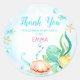Cute under the sea birthday thank you tag featuring a sea turtle and clam. Ideal for an under the sea theme birthday party for a little girl.