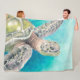 Sea Turtle Watercolor Green Fleece Blanket
