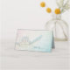 Living seas tented escort table number and/or place cards. Fold to stand, cards have sea turtles design for seating guests at a sea coast themed reception. Add table number text to use as escort cards. Remove that wording to buy blank and use as place cards. Graphic gradient blue, beige and pink colours. Pale blue wood image on the inside / underneath. Matches the Living Seas wedding collection. Fold to stand at each place setting (place cards), or on a table at the reception (escort). Individual numbers or names cannot be added prior to purchase as they come in sets of 25 cards.