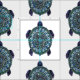 This repeated sea turtle motif was created using a digital drawing programme, whereby I made a mandala pattern. The shell is made up of different images of textures such as marbles, glass, and shells to create a bejewelled look.