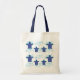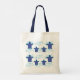 Lovely blue wave pattern tote bag with sea turtles and baby turtles swimming in the ocean.