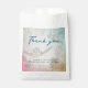Wedding favour bags in white, with living seas design. Sea turtles and beach shells are the background for "thank you" text. Add names of the couple, with a message of thanks at the bottom. This under the sea design is perfect for ocean loving couples. Use bags (come in sets of 50) for the reception, big showers and any pre-wedding party.