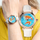 Bold and bright sea turtle watch face with band colour options. Made here as a kid's watch, but this illustrated, two turtle design, set over aquamarine sea water, looks good on a women's or men's watch as well.