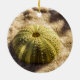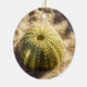 Ceramic decorative ornament with an image of a sea urchin lying on a wet beach.