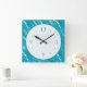 Sea Wave Pattern Blue Green with Plain White Face Square Wall Clock