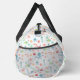 I actually had been searching other sites for a duffle gym bag and I couldn't find any. This one is just what I was looking for with all the features. The inside zip pocket, the outside mesh pocket and LOTS of room inside. Love the printing. Really like how the floral print turned out.