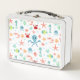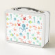 This is a standard metal lunchbox that appears to work just fine. We designed this box ourselves with an uploaded photo and custom text on the front and back. It looks absolutely beautiful except the front of the lunchbox is not centered like it shows in the photo. The print borders don't align with the inset flat part of the box where the preview photo online showed it perfectly centered in there. The back looks nice and centered though.