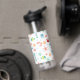 The bottle looks even better in real life. The ice cubes I put in lasts all day! I have my bottle with me all the time. It's summer and having something cold to drink feels amazing. With this bottle I always have something super cold. I have only tried the hot drink once and it lasted a long time as well. The color blue is a navy blue and the white printed on it is vibrant. It printed perfectly. I love my personalized smile water bottle.