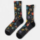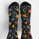 Sea Worms & Stars Chalk Drawing Pattern Black Socks