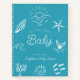 This cute 'Sea You Soon Baby' boy's baby shower guest book features a blue background with hand-drawn sunshine over waves, a whale tail, a school of fish, seashells, coral, and starfish—all in white. Personalize it for your needs. You can find matching products at my store.