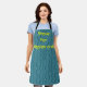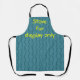 This apron has a geometric design of dark seafoam blue vertical lines with trapezoidal bumps in them on a field of lighter seafoam blue. Keep the text, change it, or delete it completely.