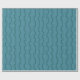 This wrapping paper has a geometric design of dark seafoam blue vertical lines with trapezoidal bumps in them on a field of lighter seafoam blue.