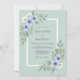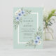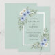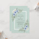 This design features a soft seafoam green background decorated with delicate watercolor florals in shades of sky blue and ivory. Elegant eucalyptus leaves and greenery sprigs accent the composition, creating a serene botanical aesthetic. Perfect for a romantic spring or summer event, this artwork evokes a sense of natural beauty and tranquillity.