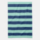Bold seafoam green and dark blue stripes form a geometric pattern that feels like summer at the beach.
