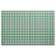 Fabric with a Plaidwerx original plaid pattern in bright seafoam green, lime, and purple plaid, with light orange and cream highlights. Pattern repeats every 7/8". Special order larger scale via https://plaidwerx.com/contact.htm