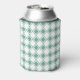 This can cooler has a mid-century modern design of solid seafoam diamonds inside seafoam diamond outlines on a field of white.