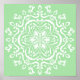 This white mandala sits on a soft green background. The colours are serene and creative. Part of the Losonieth Mandala Collection.