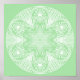 This white mandala sits on a soft green background. The colours are serene and creative. Part of the Howlsplann Mandala Collection.