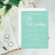 Simple style, wedding invitation that features a trendy, seafoam colour background along with the future bride and groom names and event date, time, location, and registry printed in white, stylised script. Personalise your wedding invitation by replacing info with your own. Select your invitation paper style and quantity. Designed to coordinate with our Seafoam Simple Style Wedding collection.