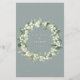 A soft blue-green, four course winter wedding menu, featuring a garland of hand painted snowberries and eucalyptus on the front and a wreath on the back. All text is fully editable, and the scattered dots on the front and back can be deleted before ordering if you would prefer. Please view this Collection in my store for menu’s with alternative floral arrangements, a different number of courses and in different sizes/colours/shapes. Coordinating items also available.
