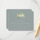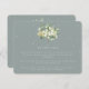 A blue-green flat wedding reception enclosure card featuring an elegant bouquet/posy of hand painted snowberries and eucalyptus on the front and a wreath on the back of the card. All text is fully editable and the scattered dots on the front and back can be deleted before ordering if you would prefer. This card is available with alternative botanical designs, in a portrait format, and in different colours. Please view the Collection in my store to see all options and coordinating items.