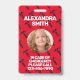 This seafood food allergy alert badge, which features white all caps block lettering on a bright red background with a scallop shell behind a universal "no symbol" sign, lets everyone know clearly and at a glance that the wearer of the badge cannot eat or ingest any sealife (including shellfish and fish). Personalize with name, photo, contact information (and other details) on reverse.