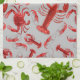 Seafood Pattern Light Grey Rustic Crawfish Lobster Tea Towel
