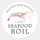 Personalised pink shrimp themed sticker/ envelope seals for your next Shrimp Boil or seafood event. It features a watercolor styled illustration of a pink shrimp. Surrounding this are spots for your unique event information.