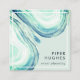 Elegant watercolor business cards feature geode or agate slice illustrations in pale seaglass green tones. Cards reverse to solid dark navy blue with white lettering. Includes three social media icons and a field for your username.