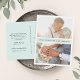 Elegant and modern wedding photo thank you postcards feature two photos bisected by a pastel seaglass green stripe bearing your custom greeting and/or names. Add a custom pre-printed message of thanks to the reverse side, or delete the sample text if using a handwritten message.