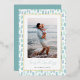 Chic coastal style holiday card adds modern nautical flair to your Christmas greetings. Perfect for sharing a vacation photo, or for families who live in coastal, tropical, warm weather or island locales, this elegant design features your favourite vertical photo with "seas and greetings" in handwritten script, with a seaglass watercolor border trimmed with gold foil. Personalise with your family name.
