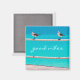 There’s “good vibes” all around whenever you use colourful, photography magnet. Happy, white and grey seagulls relax on a rope fence set against the vibrant, turquoise ocean. Makes a great gift for a friend, or even yourself!