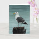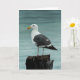 Digital painting of seagull on pier. Note card, blank inside.