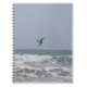 a notebook featuring a photo of a seagull catching a fish out of the Atlantic Ocean.