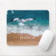 Gorgeous seagull flying over the sea waves surf at the shore.