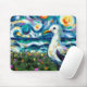 Seagull Van Gogh Style Beach Sky Blue Teal Mouse Pad